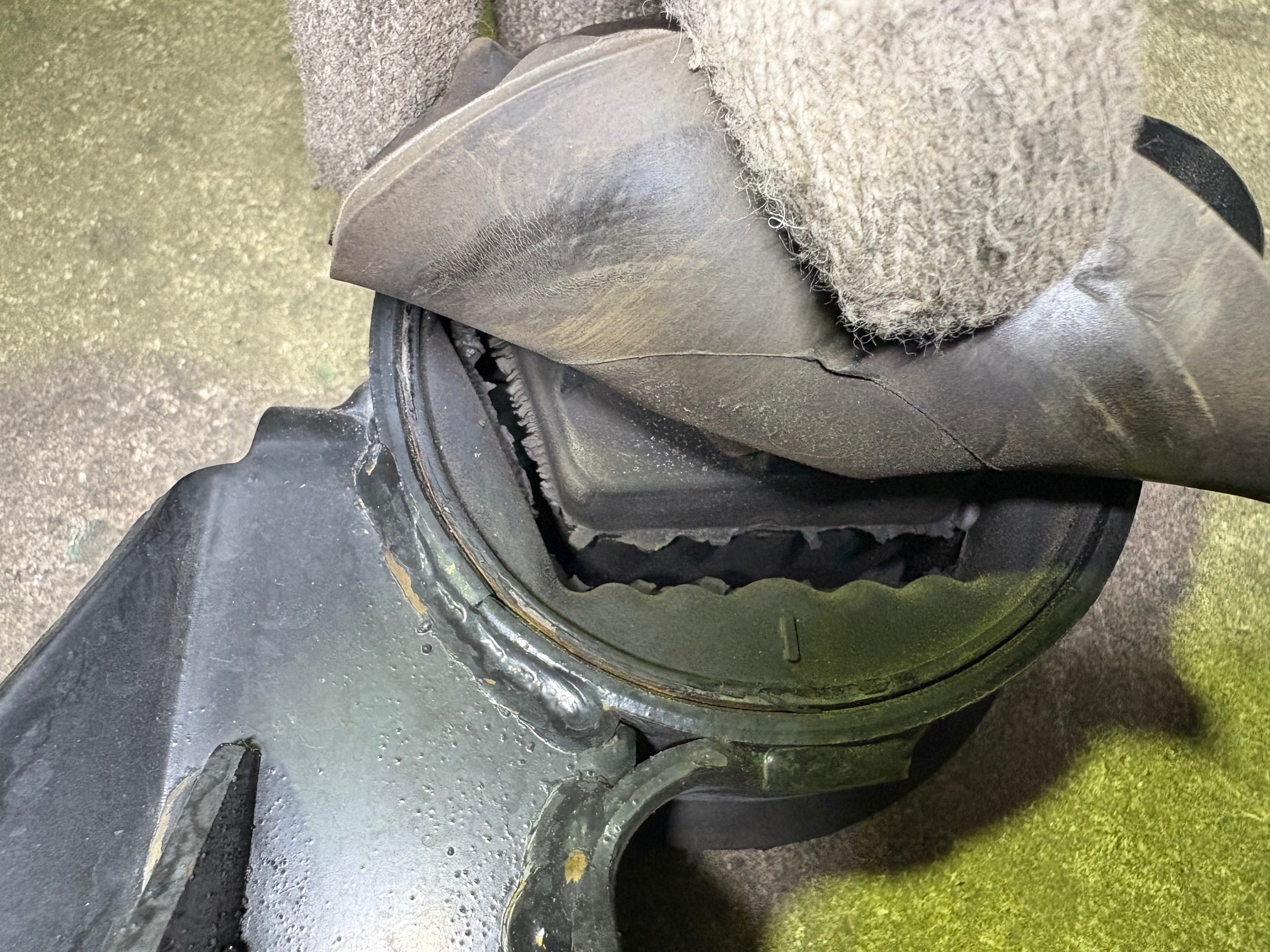 外したエンジンマウントです、分かりにくいですがゴムの部分が千切れてます。
