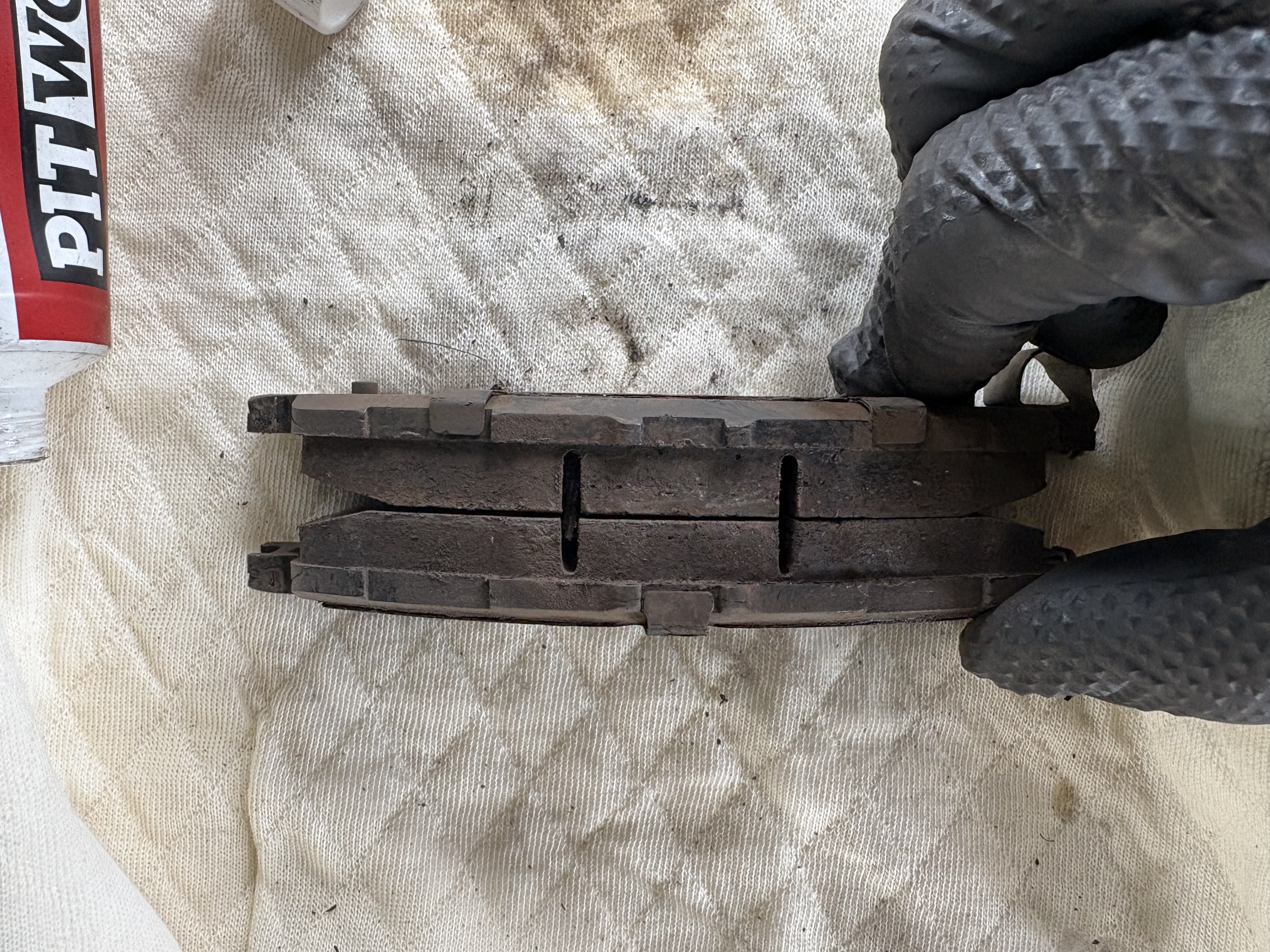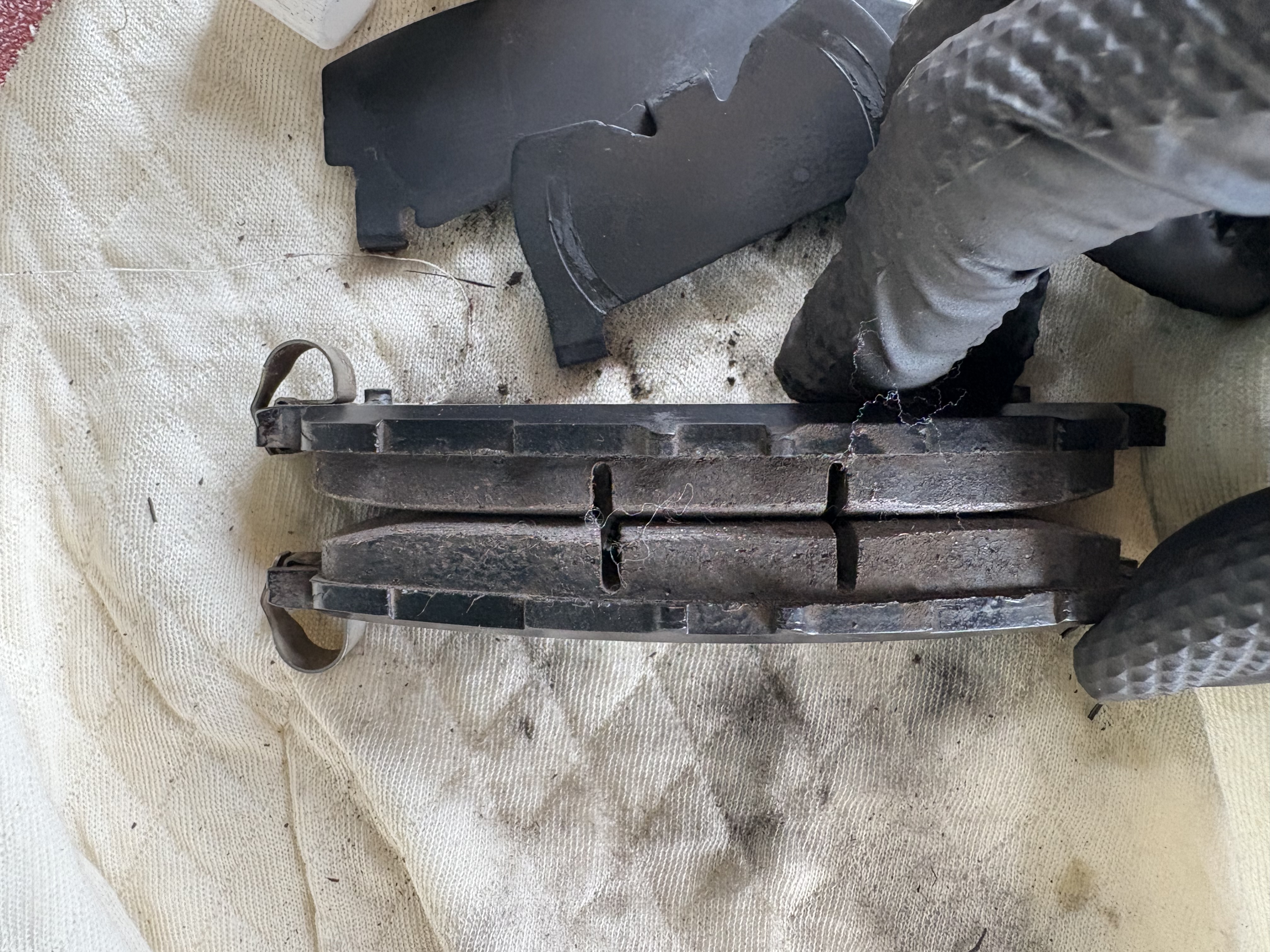 まず最初にフロントブレーキパッドの車両から取り外した状態です。