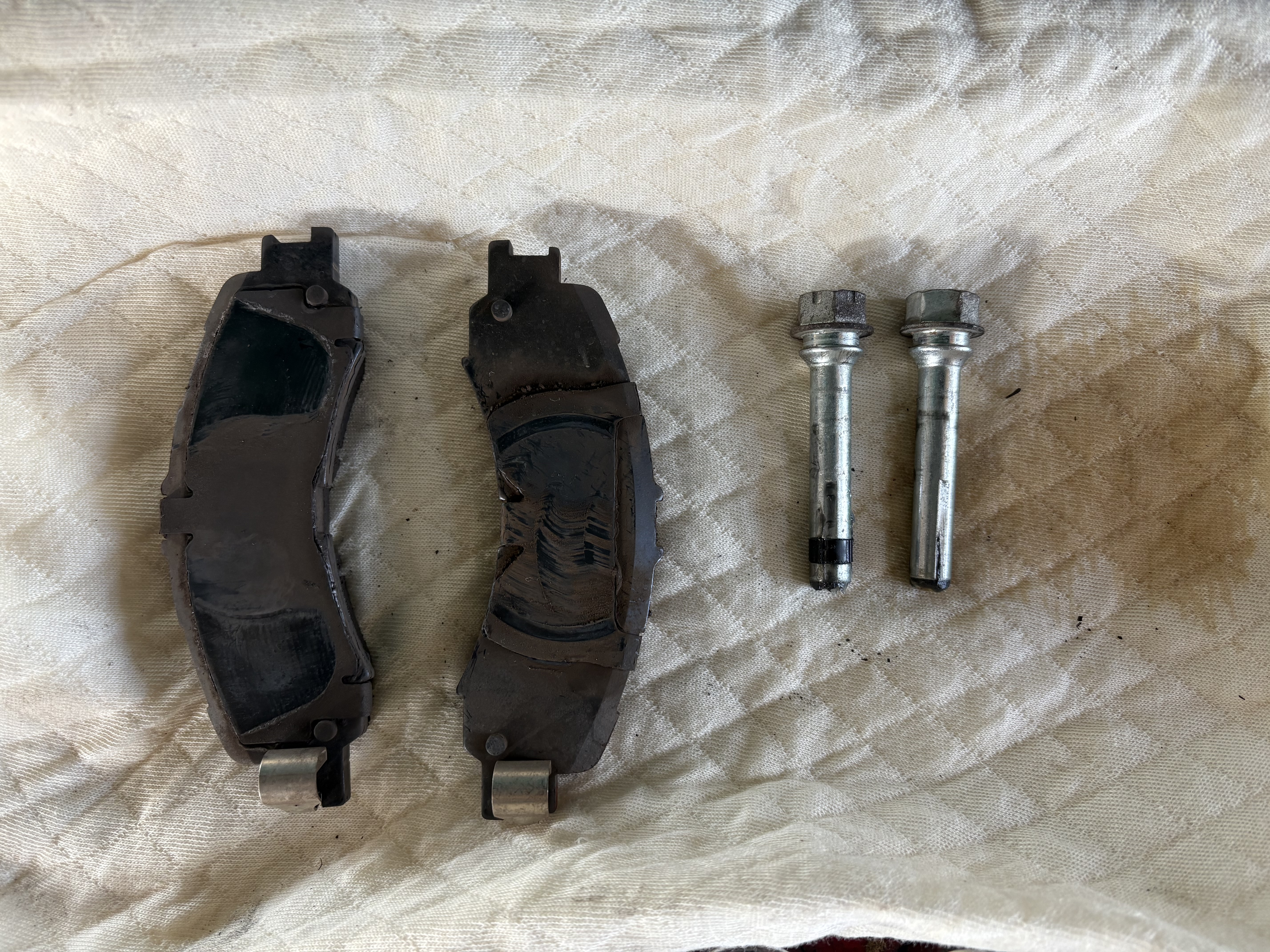 下に写ってるのがスライドピンと言う物でこちらも分解したついでに清掃&グリスアップをしていきます。